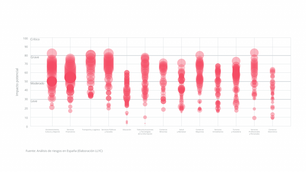 Bajo este enfoque, el informe “Análisis de Riesgos Corporativos en España” aplica estas metodologías para identificar y comprender los principales riesgos que enfrentan las empresas de los sectores primario, secundario y terciario del país. El estudio destaca insights estratégicos sobre las conversaciones digitales relacionadas con asuntos de riesgo, la polaridad reputacional, el nivel de involucración de los grupos de interés y el impacto potencial que la materialización de estos riesgos podría tener en la reputación de las organizaciones.