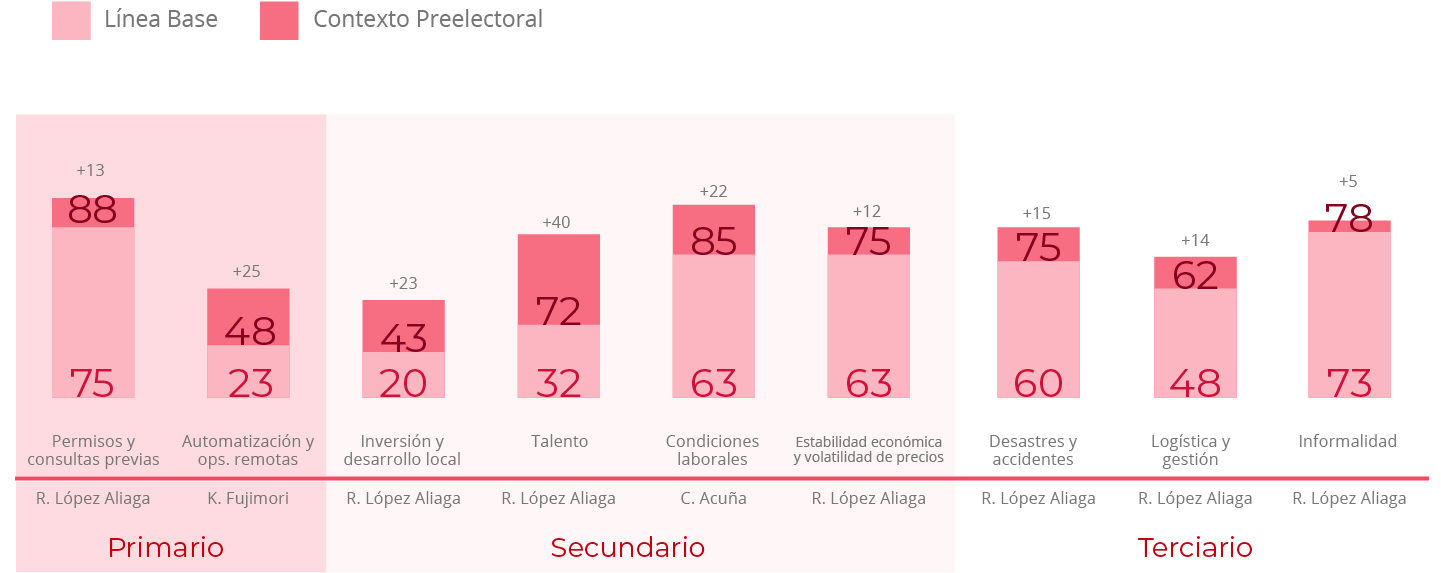 El contexto electoral está reconfigurando la jerarquía de riesgos. La campaña actúa como un catalizador que altera la clasificación de riesgo de asuntos que, en contextos ordinarios, podrían ser más leves, al tener una naturaleza predominantemente técnica. El análisis comparativo evidencia saltos cualitativos en la criticidad de temas específicos:
