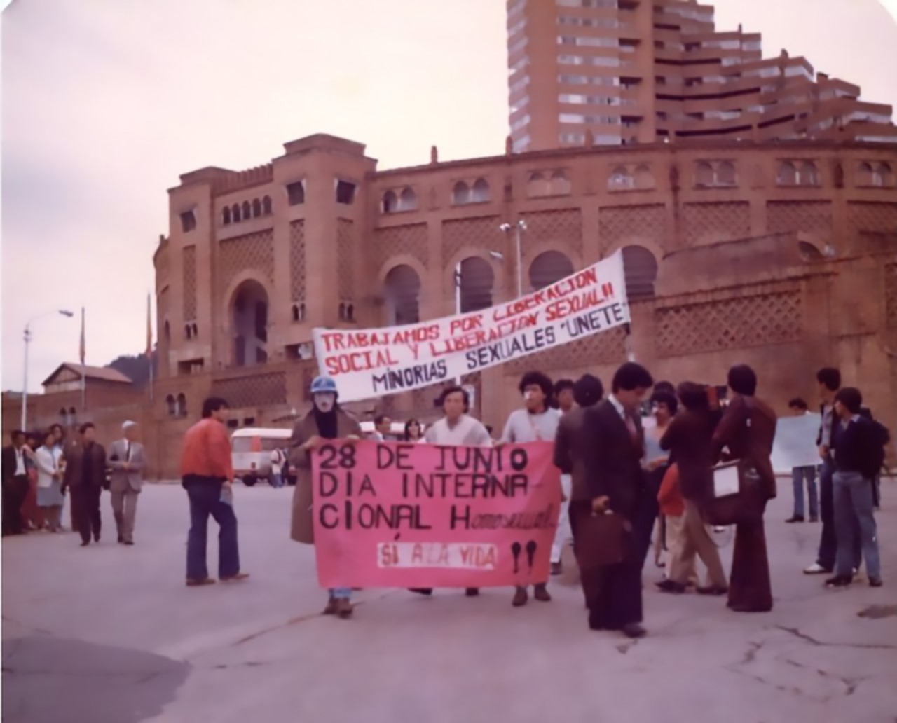Manuel Velandia took part in Colombia’s first-ever LGBT march on June 28, 1983. But he remembers an earlier moment as the true breakthrough: “the first time we queers took to the streets was on May 1.” In a country where gatherings of more than three people were banned, the march was a deeply political and symbolic act. They wore pink triangles outlined in black, painted their faces, and carried their ID numbers to say, “we are here.” One of the chants he recalls most clearly was, “We are not criminals or deviants—just homosexuals.” One of his signs read: “Mother, if you love your man, let me love mine.”