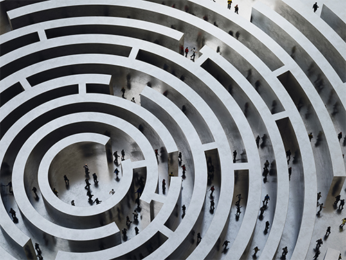 People walk in a complicated circular maze No hay nada más cierto que la duda. Aunque a ratos nos asalta la ansiedad, hemos medio aceptado ya que nuestras nuevas certezas son la incertidumbre, la complejidad y el conflicto. En la política y en la vida. En el ejercicio periódico -y saludable- de observar la realidad y extraer de ella conclusiones, aprendizajes, hemos ido desgranando año tras año cómo iban virando los núcleos de toma de decisión y cómo tenían que virar también con ello las estrategias de los grupos de interés que querían influir legítimamente en las decisiones públicas. En esa observación casi de prismático hemos sido testigo de la ruptura con fragmentos entre la política y el poder¹, de una transformación del poder oligárquico en micropoderes² y, sin trascendencias, hemos sido testigo del fin de las mayorías absolutas, de una vuelta al parlamentarismo -menos inglés, eso sí, y más infotaining– en detrimento del Ejecutivo y de un intento de desplazamiento del eje derecha-izquierda por el de nuevo-viejo. Y hemos sido testigos de esto último sin cansarnos demasiado porque todo ha ocurrido, aparentemente, muy rápido. En España, por ejemplo, bastaron tres elecciones -muy juntas entre sí- para que así fuera.