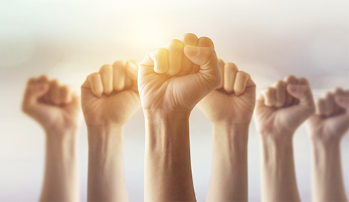Peoples raised fist air fighting and sunlight effect, Competition, teamwork concept, background space for text.Hemos hecho del arte de ir tirando (muddling through) el eje racional de la decisión pública de las democracias modernas. Y ni tan mal, dirán muchos. Lo que ocurre es que, en el entretanto, estamos cambiando tan rápido que ya ni nos conocemos³ y el pequeño Frankenstein que somos como sociedad crece desigual, contradictorio y amorfo. Las democracias modernas viven un momento de cierto paroxismo y en el entretanto el sector privado empuja en distintas direcciones, en parte aprovechando la dejación y en parte por necesidad, porque la opción de esperar se hace ya insostenible. Si la España 2018 se antoja (pre) electoral y seguirá así hasta 2020, ¿qué intentos veremos de contrarrestar esa incertidumbre, complejidad y conflicto de las que hablábamos?