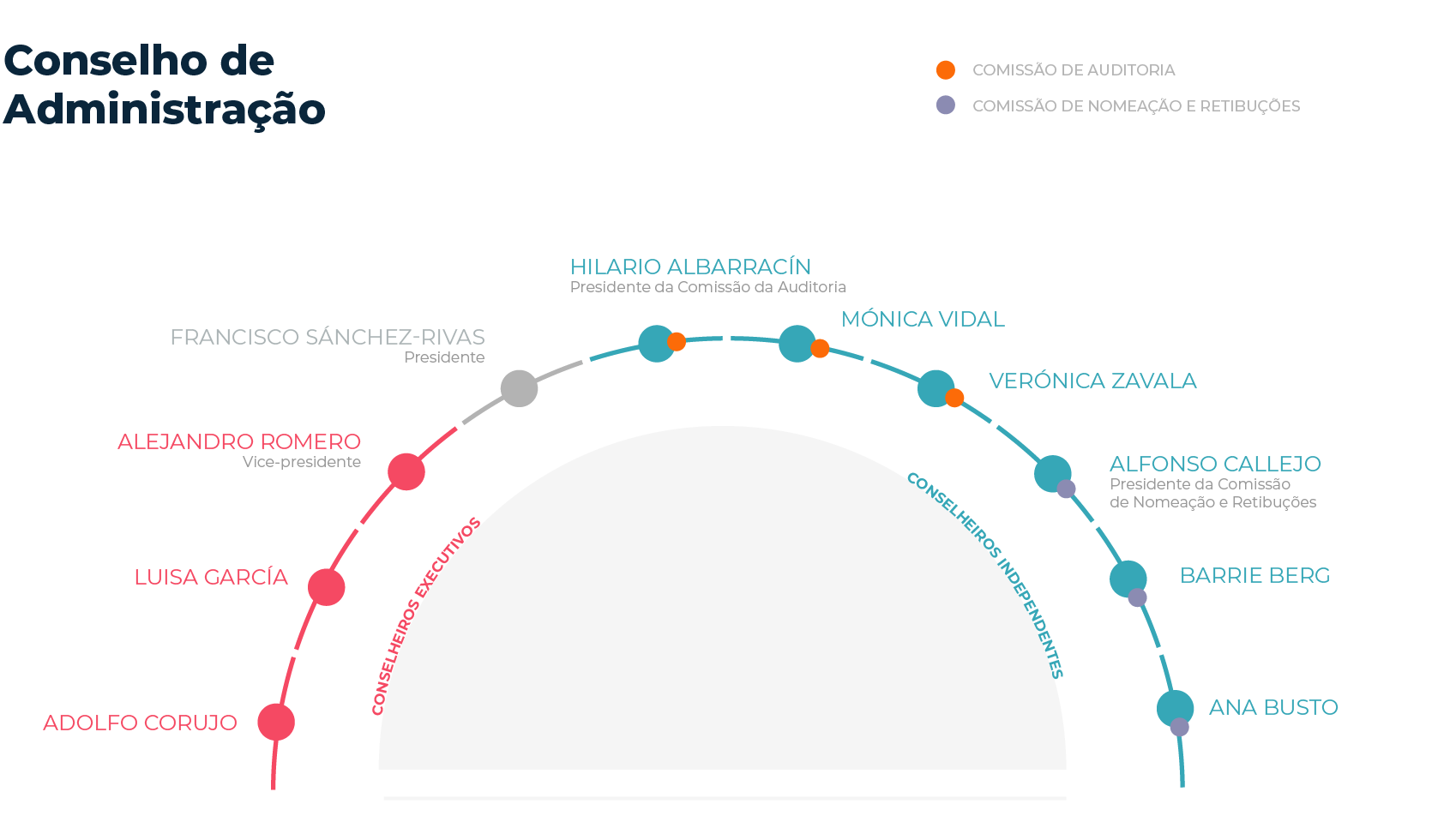 O Conselho, presidido por Francisco Sánchez-Rivas, conta com duas comissões: a comissão de auditoria, presidida por Hilario Albarracín Santa Cruz, e a comissão de nomeações e remunerações, presidida por Alfonso Callejo Martínez, ambos com grandes trajetórias no mundo das finanças e da comunicação.
